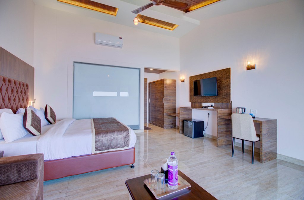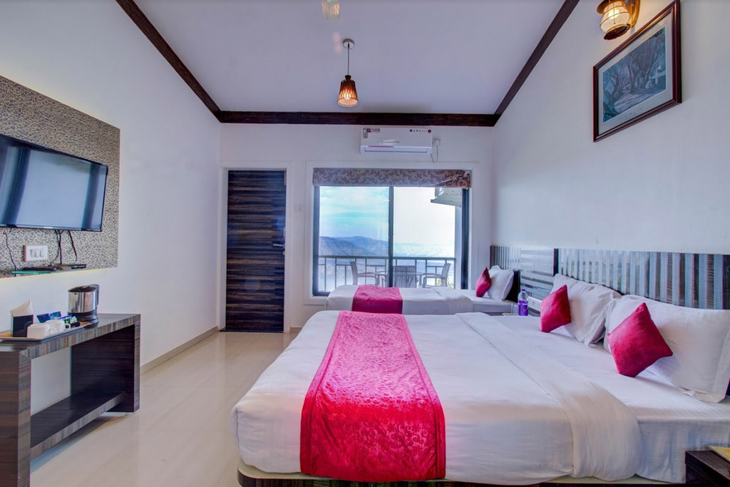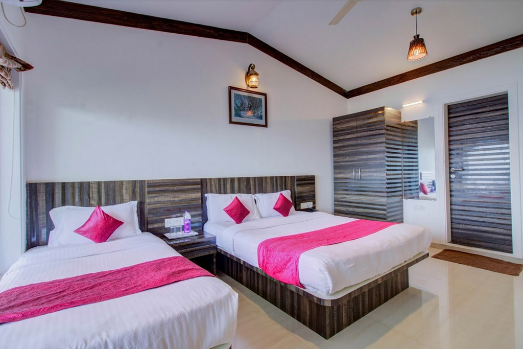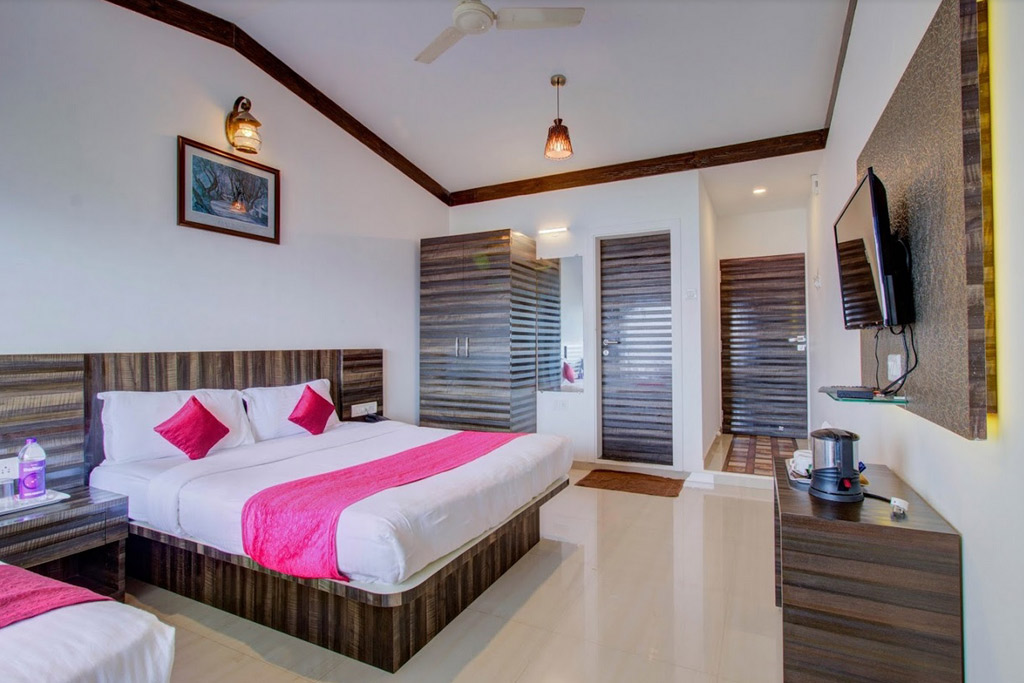 These are beautifully designed budget hotel rooms. The rooms accommodate 2 Adults and a kid, and are specifically designed for families with kids. The room has an open balcony with Valley view and are spacious and elegantly furnished with all amenities.
