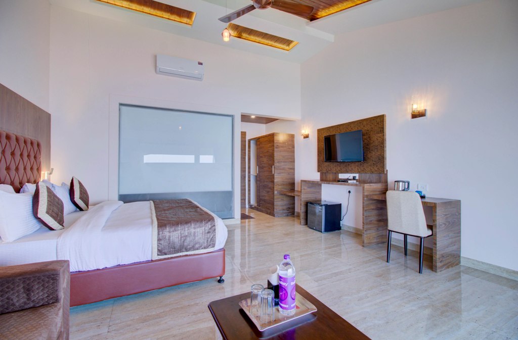 Spacious & elegantly furnished with all modern amenities, Deluxe rooms are perfect for a family of 2 Adults and a kid, looking for affordable, comfortable and safe hotel accommodation.